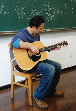 图为张广天老师现场弹唱