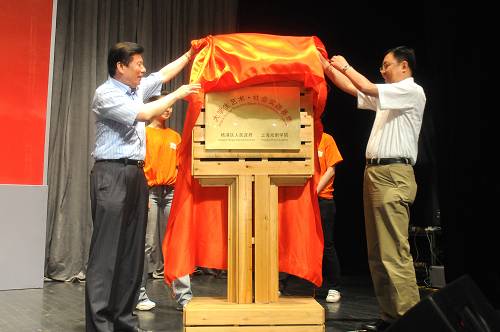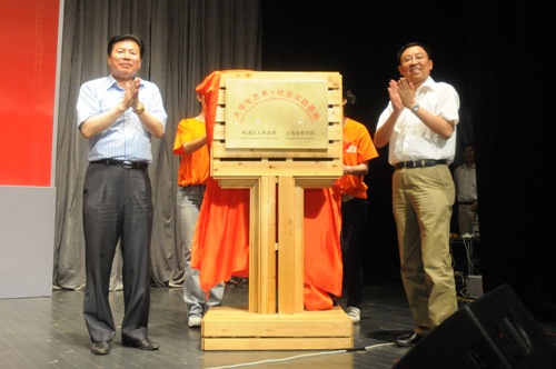 为了进一步拓宽人才培养的渠道,增加大学生深入基层、了解社会和参加艺术实践的机会,在杨浦区人民政府的大力支持下,我校将在杨浦区设立“大学生艺术・社会实践基地”。揭牌仪式昨天(6月17日)下午在我校端钧剧场举行。