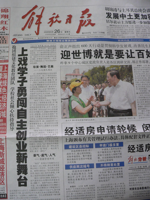 图为解放日报头版版面(白水摄)