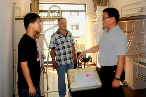 图为校领导关心学生住宿情况
