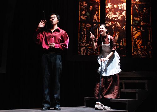 由08级MFA崔小璇导演、08级MFA各专业学生倾力打造的毕业演出剧目《和天使在一起的二十分钟》昨晚7:15分在端钧剧场成功举行首演。