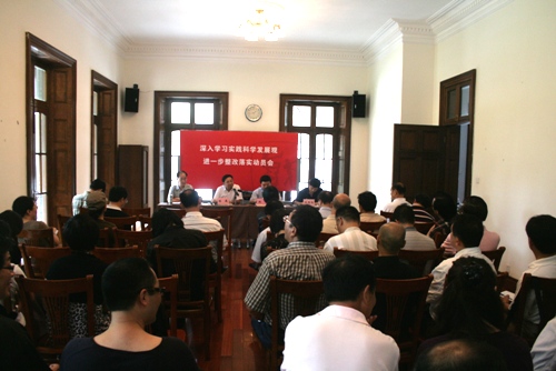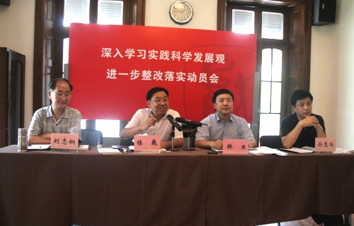 我校今天(24日)下午在老干部活动室举行“深入学习实践活动进一步整改落实动员会”。党委书记、院学习实践科学发展观活动领导小组组长楼巍代表党委做进一步整改落实的动员讲话。院长、院学习实践科学发展观活动领导小组组长韩生主持会议。副院长、院学习实践科学发展观活动领导小组副组长刘志钢,副院长孙惠柱和全体中层干部出席会议。
