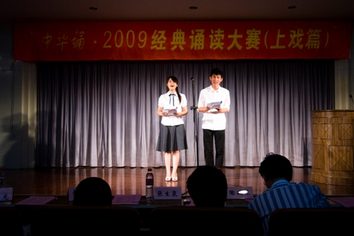 9月25日晚,“中华诵•2009经典诵读大赛(上戏篇)”在莲花路校区图书馆报告厅举行。本次大赛邀请了上海戏剧学院宣传部部长张生泉老师、著名语言学专家陶延东老师、上海戏剧学院院办副主任林剑龙老师、电视艺术学院副院长赵韫颖老师以及上海戏剧学院团委副书记徐晶老师担任评委。此次比赛由上海戏剧学院宣传部、学生处主办,电视艺术学院团总支学生会承办。
