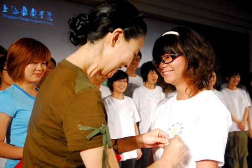 张生泉、赵韫颖两位老师分别为主持专业和编导专业的两个班级新生颁发了上海戏剧学院校徽。50多位新生一一上台发表即兴演讲,表达了对学校、对学习、对人生的憧憬和展望。电视编导专业09级的每位新生还意外地收到了班主任张小鸥老师的一份特殊礼物――由国家邮政总局专门为09编导专业新生印制发行的首日封,上面印着“当我戴上上戏校徽的时候――09级广播电视编导入学纪念2009.09.07”。