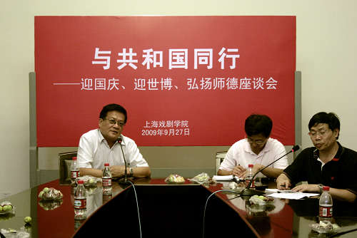 昨天(9月27日)下午,我校在佛西楼会议室举办“与共和国同行――迎国庆、迎世博、弘扬师德座谈会”。座谈会由宣传部、工会、人事处主办,副院长葛朗、宣传部长张生泉、工会常务副主席谢建平、人事处主持工作副处长张�以及来自各院系的优秀教师代表、辅导员出席座谈会。座谈会由宣传部长张生泉同志主持。