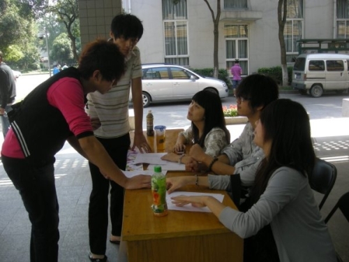 中午,当院学生会招新工作人员来到招新地点布置现场时,已经有一些热心的同学在等候报名了。12:15,招新准时启动,前来咨询和报名的同学络绎不绝,院学生会各部门相关负责人也热情、耐心的解答同学们的疑问,及时给予最客观、最明确的答复。12:45左右,院学生会招新达到了一个小高潮,报名表格一时间出现了供不应求的状况,工作人员马上进行协调,并优先保证同学顺利报名。截止10月14日中午13:15,已有近160名同学提交报名表格。