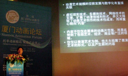 韩生院长在第二届厦门国际动漫节动画论坛上作题为“动漫的延伸――新媒体技术在演出艺术中的应用”的演讲