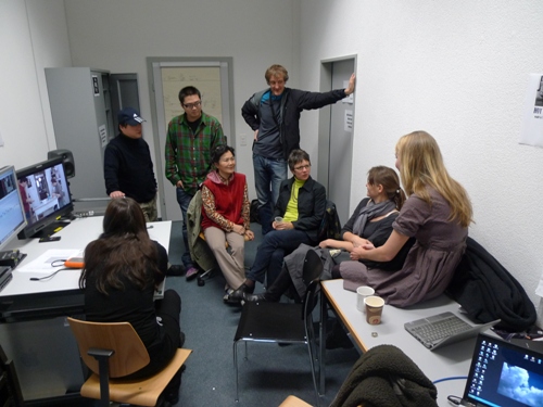 在苏黎世艺术大学,电影学院负责人露西教授、瑞典电影学院系主任玛丽安娜教授和我校电视学院电视编导系主任方方教授三位发起人相聚甚欢。参加工作坊的每位师生都用英语做了简短、生动的自我介绍,很快熟识起来。