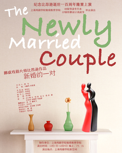 比昂逊剧作《新婚的一对》将于12月1日上演于上海戏剧学院新空间。该剧由上海戏剧学院继续教育学院制作,是08导演专升本同学们的毕业演出,总导演是上海戏剧学院教授、博士生导师张仲年,张仲年教授的研究生吴汶聪担任导演,文学顾问兼策划则由上海戏剧学院戏剧文学系教授、研究生导师刘明厚担任。