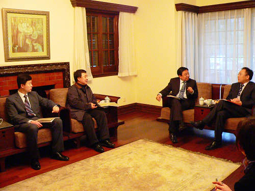 开幕式前我校领导楼巍、韩生在贵宾室与教育部国际司副司长于继海、欧亚处处长李海亲切会晤