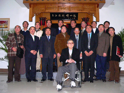 在周信芳先生使用过的戏服前合影(前排为周少麟先生)