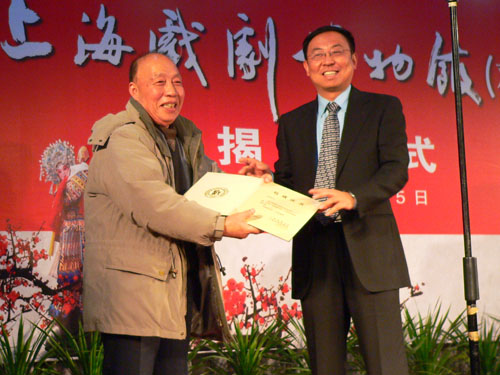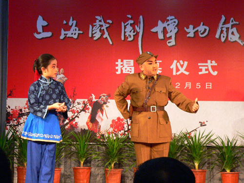 韩生院长首先在揭幕仪式上致辞,尚长荣先生代表戏剧界、薛明扬主任代表教委发表了热情洋溢的讲话。我校党委书记楼巍向周少麟先生、戏曲学校古峰老师颁发捐赠证书,并与院长韩生共同为画家代表颁发收藏证书。上海美术家协会副主席张培成先生、谭孝曾先生也在仪式上发表了致辞。仪式上,来自戏曲学校的学生还为大家献上了《沙家浜》、《大登殿》、《打龙袍》等京剧片断,他们的精彩演出受到了现场观众的一致好评,也让他们领略了戏剧博物馆动态展示的风采。