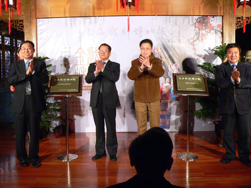 薛明扬(左二)、谭孝曾(左三)、我校领导楼巍、韩生为展览揭牌
