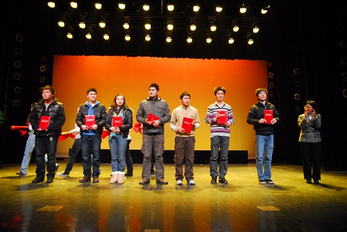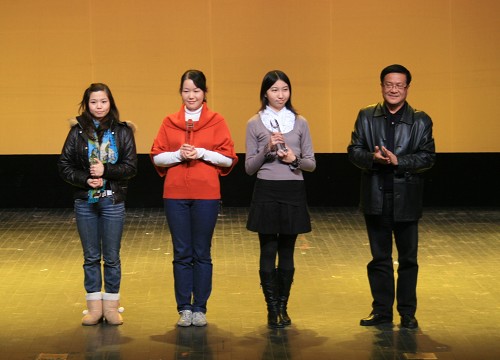 2009年12月9日晚6点,由上海市教卫党委、上海市教委主办,上海戏剧学院承办的“莘莘学子爱国情――2009年上海市大学生校园戏剧展演”闭幕式暨颁奖典礼在上海戏剧学院端钧剧场举行。市教卫党委副秘书长曹荣瑞、市科教党委宣传处副处长劳晓芸、市教委体卫艺科处正处级调研员梁建敏,在我校副院长葛朗的陪同下出席了闭幕式。本次展演活动以庆祝新中国成立60周年、迎接2010年上海世博会为主题,得到了上海近二十所高校的积极响应,自11月6日开幕以来,共上演了十一场大戏和一个小品专场演出。经评选,复旦大学反映大学生在居委会当社工的话剧《小巷总理》和华东理工大学反映地震延考生故事的话剧《延考生》获得一等奖,上海戏剧学院反映大学生创业的音乐话剧《瞬间不是永远》获得专业组一等奖。来自上海各参展高校的代表近200余人参加了闭幕式。