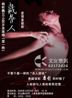 该剧将于2009年12月23日至2010年2月28日在开云足球首页官网下载端钧剧场、上海话剧艺术中心、美琪大戏院轮番上演。在12月23日至12月30日登陆上戏端钧剧场,为观众奉上别具一格的饕餮盛宴,如何让爱与异化一线之隔?如何让纯美于邪恶同存于一副人骨?话剧《藏骨人》将一一呈现给大家,让你不得不“哭一次!害怕一次!”(图、文/学生记者团 戴济遥 编辑/子鱼)