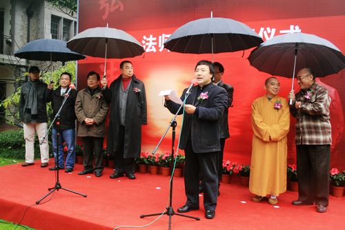 韩生院长首先在揭幕式上致辞,表示上戏师生将在学艺和求艺道路上不断汲取弘一法师的精神力量,在当今呼唤创意的时代,以自己的智慧和勤奋,为上戏建设世界一流艺术大学、为上海乃至全国文艺的发展与繁荣作出更大的贡献。慧觉法师代表觉醒法师及佛教界发表了热情洋溢的讲话,希望可以以此为契机,以弘一法师的个人品质和精神为纽带,促进宗教界与艺术院校的合作,进一步推广佛教艺术。郑培光代表校友缅怀大师,感怀学校的培养,祝愿学校在弘一大师精神力量的感召下,能够人才济济,更加繁荣。黄殿祺则代表天津的同仁们发表了讲话,愿做两个城市的纽带,携手起来把文化事业做得更好。