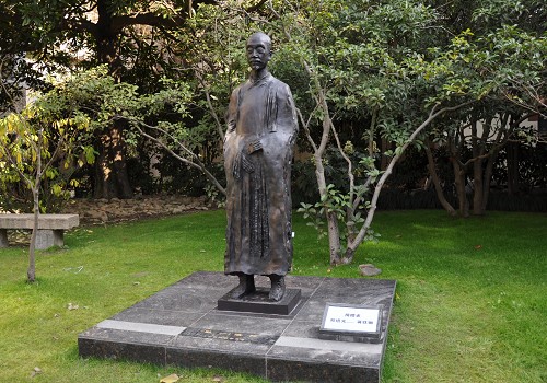 弘一法师塑像静静地座落在美丽的校园里(伟伟 摄)