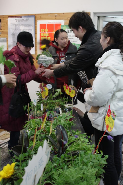 3月24日中午,由校学生处、团委主办,创意学院07级创意管理班和尚熙•创文化传媒(模拟)公司承办的“为学校添点绿”盆栽义卖活动在尚熙学生公寓成功举行。活动现场气氛热烈,同学们热情高涨,纷纷表示希望为寝室增添一抹绿色,让自己的寝室生活更加亮丽,并为学校65周年生日奉献上戏学子的绵薄心意。