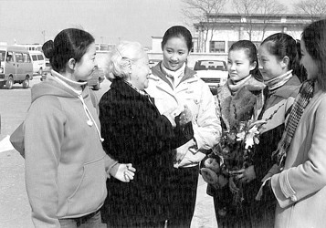 1986年4月老校长李慕琳看演出后嘱咐上海舞蹈学校的学生