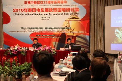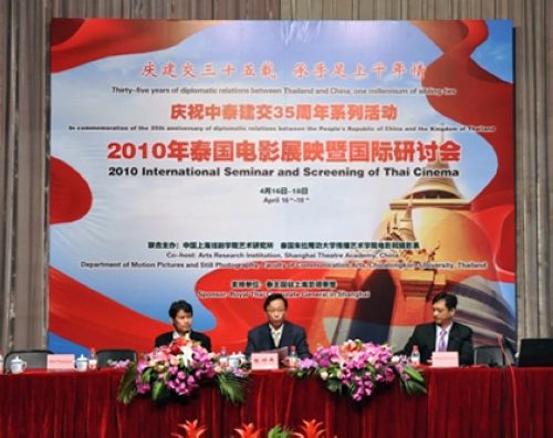 近日,为期三天的“2010年泰国电影展映暨国际研讨会”在上戏新空间落下帷幕。泰国朱拉隆功大学传播艺术学院电影与摄影系主任拉克桑•维瓦辛纽东教授、泰王国驻沪副总领事牛泰蓬•康卡贺兰,以及出席本次会议的来自泰国、新加坡、北京、杭州、内蒙古、重庆、上海等近20所高校的40余位国内外专家共同参加了闭幕仪式。闭幕式由我校张仲年教授主持。