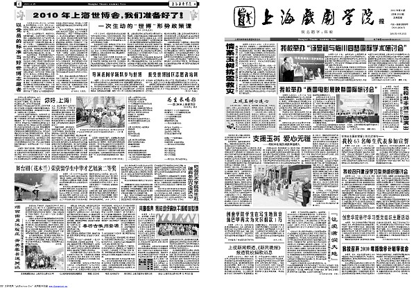 《开云足球首页官网下载报》2010年第4期已于2010年4月25日出版(总第209期),共四版,本期重点内容有:《情系玉树抗震救灾》,《评论:上戏玉树心连心》,《支援玉树 爱心无疆》,《创意学院学生在写生地致哀 蒲巴甲再次为灾区捐款1万》,《上视新闻频道、《新民晚报》报道我校捐款消息》,《“让爱滋润大地”――我校师生为西南五省抗旱赈灾奉献爱心》,《我校召开建设学习型党组织研讨会》,《创意学院举行学习型党组织主题活动》,《我校召开2010年版教学计划审议会》,《世博会志愿者宣誓上岗仪式举行――我校63名师生代表参加宣誓》,《我校举办“泰国电影展映暨国际研讨会”》,《我校举办“汤显祖与临川四梦国际学术研讨会”》,《我校赴非洲三国演出》等,敬请关注。也可从校园网主页新闻中心内院报专栏点击下载观看。(图文/谷晴 编辑/谷晴)