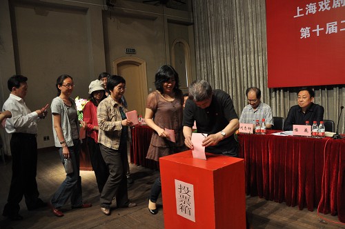 图为代表在进行投票表决