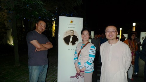 图为方方教授与获奖导演中央电视台《见证》栏目制片人陈晓卿(左)、纪录片《故宫》、《敦煌》导演周兵(右)合影留念