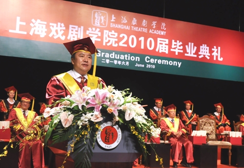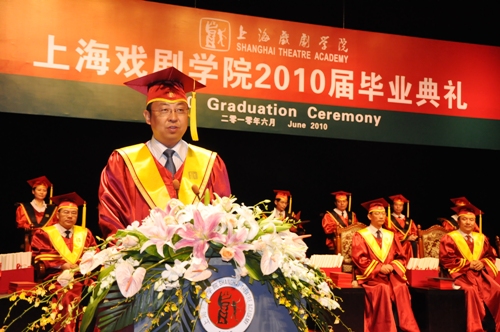 今日上午8时半,2010届毕业典礼在上戏剧院隆重举行,市教委副主任王奇,校领导楼巍、韩生、刘志钢、孙惠柱、黄昌勇、宫宝荣,校学术委员会主任叶长海,校务委员会副主任葛朗,院长助理徐幸捷,各院系领导龙俊杰、刘永华、陆军、卢昂、赵韫颖、陈家年、孙福良,教务处处长陈其毅、副处长厉震林,公教部副主任陈敏等在主席台就座。各(院)系和有关部门领导、研究生导师、毕业班班主任、辅导员和全体应届毕业生及家长一同出席了毕业典礼。毕业典礼由院长助理王宏舟主持。
