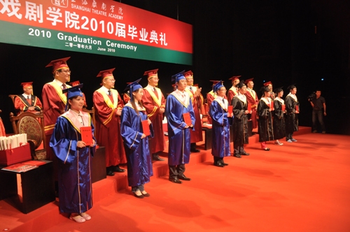 最后,举行了毕业生学位授予仪式,校领导们宣读了校学位委员会关于授予博士、硕士、学士学位、专科毕业生名单的决定及毕业生名单,校领导集体向毕业生授予学位证书及毕业证书并与毕业生在上戏剧院前合影留念。