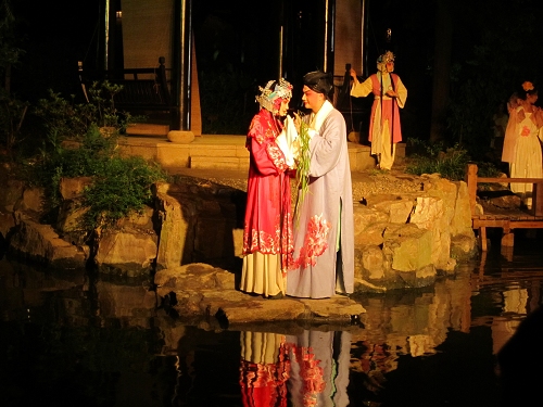这是一场真正意义上的“游园惊梦”,汤显祖笔下追求至情的杜丽娘、柳梦梅仿佛从这古老园林深处的层层绿意中走来,树木、水塘、山石,每一个来自于大自然的造物都多情地见证着他们生生死死的爱情。置身于这一空间,人们更能真切地理解为什么杜丽娘的梦与情总是与“园”有关,并体认杜丽娘的心声“一生爱好是天然”。