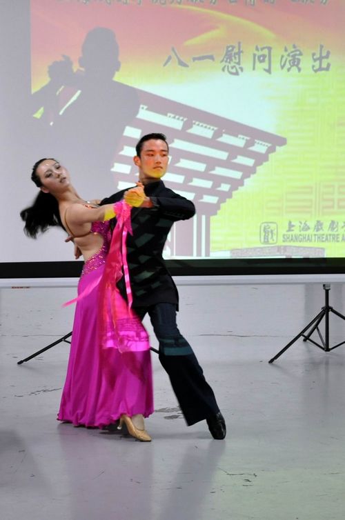 舞台上表演了歌曲、舞蹈、朗诵、乐器演奏等节目,一首首感人的歌曲,一支支动情的舞蹈,他们把最衷心的感谢与最真诚的祝福融入在优美的旋律中,诠释在动人的舞步里,真心地祝福这些仍奋战在世博安保第一线的武警官兵们节日快乐。