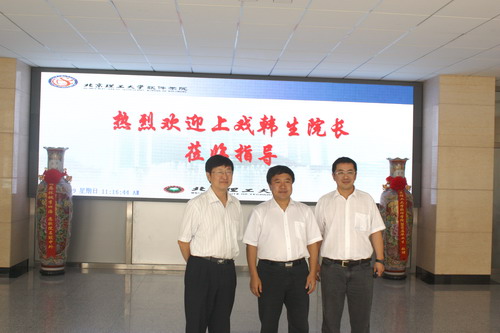 2010年9月19日,韩生院长带领创意学院副院长刘志新、虚拟实验室主任助理盛思梅和张敬平老师一行来到北京理工大学软件学院进行参观学习和合作交流。受到北京理工大学党委书记郭大成、副校长赵长禄、软件学院院长丁刚毅等领导和老师的热情接待。