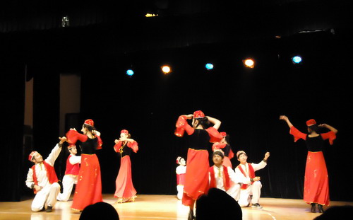 不愧是表演系的晚会,节目单那是相当的丰富多彩、各式各样!唱歌跳舞必不可少。维族舞蹈别有一番风情,少数民族同学们一跳起来,仿佛我们真的来到了新疆的吐鲁番。机械舞,绝对年轻人的至爱,诙谐的动作惹得大家笑得前仰后合。还有音乐剧《西区故事》、现代舞等,看得眼花缭乱。当然少不了说说我们班的压轴节目 ――民族舞蹈集锦。回想起一开始大家说要编一个跳舞的节目,但是班里基本上一半的人都没有什么舞蹈基础。之后就想方设法编一些简单好看的动作,然后抽空不断排练。有时,大家还会意见不一闹点小矛盾。不过今天演出成功,一切都值得啦!