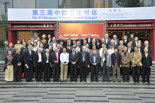 昨天下午,第三届中欧文化对话代表团一行前来我校进行参观访问。我校党委书记楼巍、院长韩生等领导对嘉宾的到来表示热烈的欢迎。来访的嘉宾共计100余人,分别来自中国、丹麦、英国、卢森堡、德国、波兰、瑞典、奥地利、罗马尼亚、匈牙利、比利时、西班牙、意大利等各个国家,全部都是中欧文化艺术界的著名学者、专家和艺术家。包括丹麦文化大臣、丹麦前外交大臣皮尔·斯蒂·穆勒,丹麦驻中华人民共和国特命全权大使裴德盛,英国Comedia机构负责人、创意和以文化塑造城市未来等主题的权威专家查尔斯·兰德瑞,欧盟文化中心合作组织前主席、歌德学院秘书长汉斯·乔治·克诺普,卢森堡新明斯特节及文化中心委员会特别顾问、前驻法国大使杨霞克,英国驻华使馆文化参赞、英国文化协会中国区总监白琼娜,中国艺术研究院党委书记、副院长、研究员张庆善,中国艺术研究院党委副书记、副院长杨化玉,著名音乐家田青,著名舞蹈理论家资华筠,著名美术家朝戈,等。嘉宾们在上戏剧院兴致勃勃地欣赏了学生汇报演出和青春版京剧《死水微澜》,并与学校领导在上戏剧院广场合影留念。