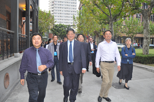 图为楼巍书记、韩生院长陪同嘉宾参观校园