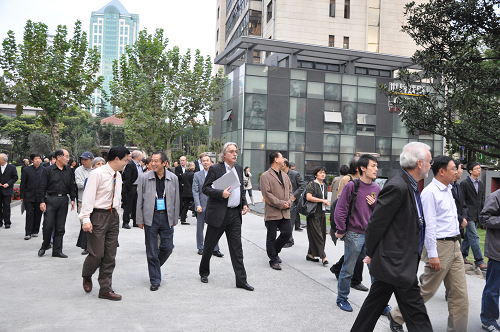 图为嘉宾们兴致勃勃地在我校参观