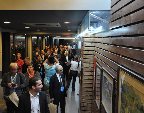 图为嘉宾们在我校上戏剧院展厅参观画展