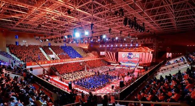 现场18个学生方阵还围绕“歌唱祖国”“校歌嘹亮”“青春颂歌”“唱响未来”4个主题进行了拉歌展示,跃动的歌曲、振奋的口号将歌会一次次推向高潮。