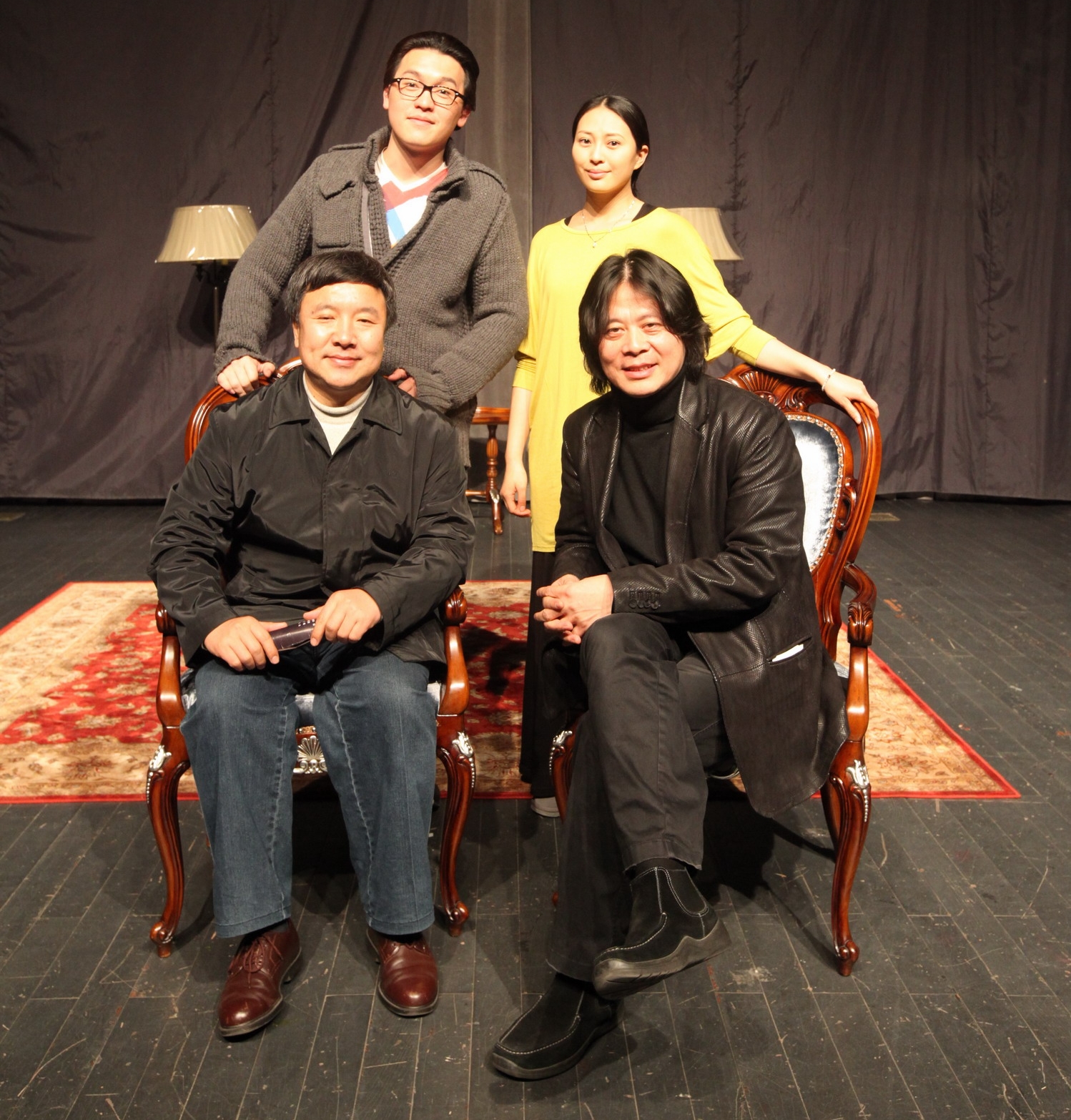 图为韩生院长、谷亦安导演与周燕燕、孙信宏两位演员合影