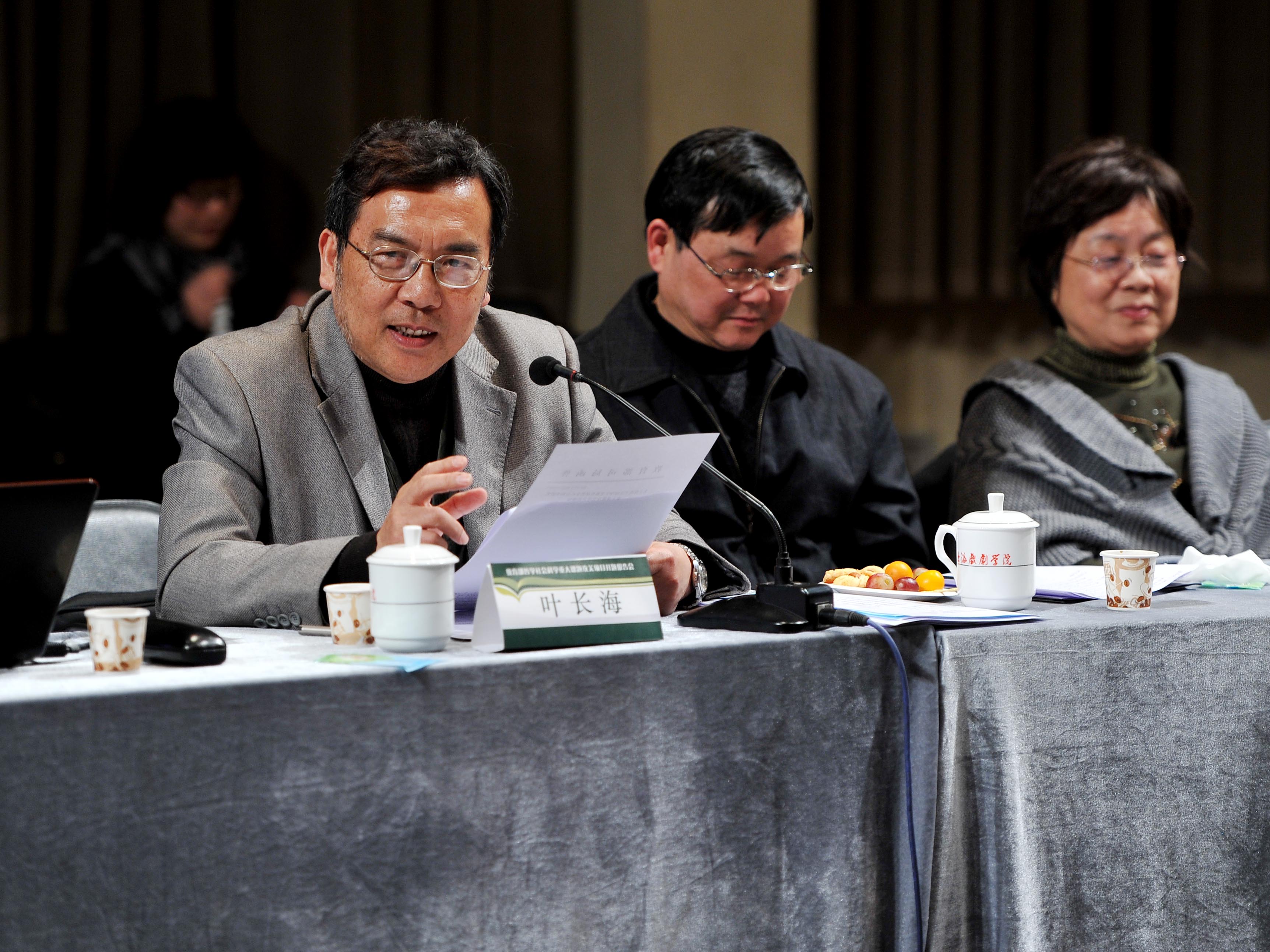 《中华戏剧通史》项目由我校国家重点学科、戏剧戏曲学学科带头人叶长海教授领衔担任首席专家,其学术团队涵盖了我校和我国各地戏曲学和戏剧学等学科的著名专家。在开题报告会上,叶长海教授首先汇报了课题研究的基本内容和基本思路。课题组其他成员王小盾教授(四川师范大学)、翁敏华教授(上海师范大学)、李强教授(陕西师范大学)也分别做了补充发言。作为与会专家,来自复旦大学的黄霖教授、华东师范大学的齐森华教授、中国传媒大学的周华斌教授、南京大学的马俊山教授对课题组研究工作的基本内容和基本思路做了点评和建议发言。他们一致认为,课题组的准备工作比较充分,研究内容有创新,研究思路有突破,研究方法有高度,特别是叶长海“上下延伸、横向会通”的研究特色更是具备较高的学术含量和研究价值。齐森华教授指出:“这个研究项目不仅注重文本、也注重演出;不仅注重汉民族戏剧、也注重少数民族戏剧;不仅研究金元明清、而且上至汉唐下至现当代,设想有、目标对、队伍好。”当然,专家们对如何进一步做好课题纷纷提出了很好的建设性意见。