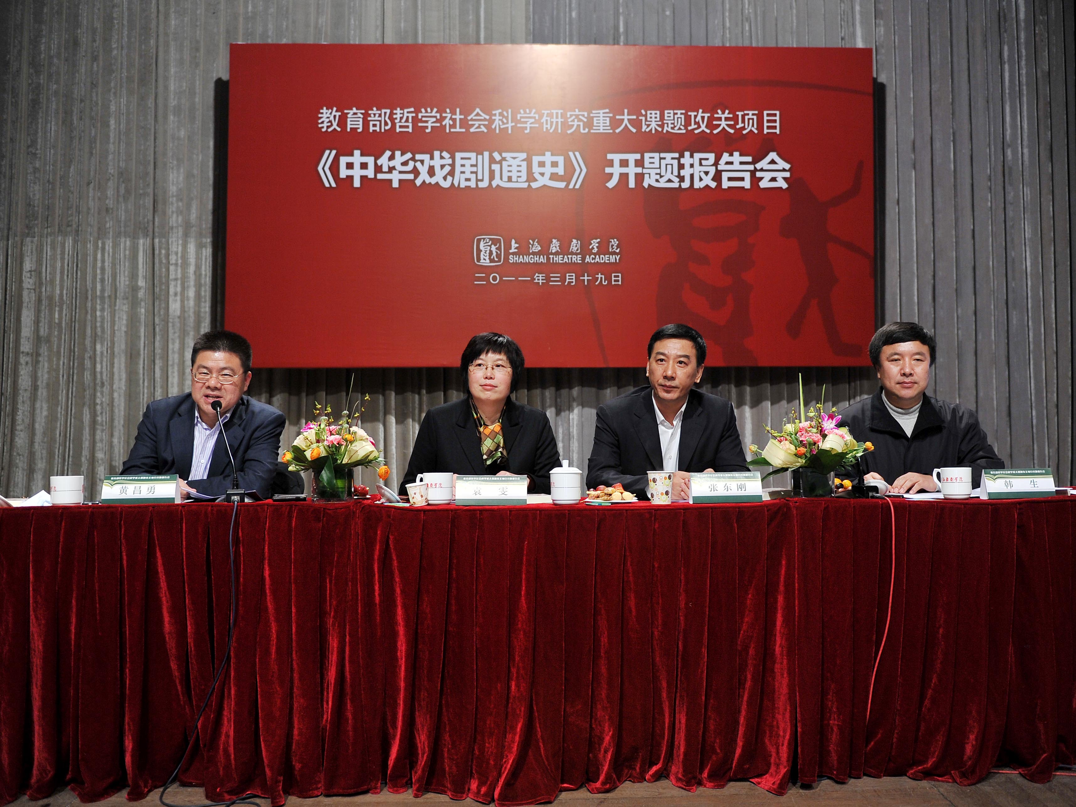 今天(3月19日)下午,教育部哲学社会科学研究重大课题攻关项目——《中华戏剧通史》开题报告会在我校新空间剧场隆重举行。教育部社科司副司长张东刚,上海市教委副主任袁雯,开云足球首页官网下载院长韩生等领导出席开题报告会并先后讲话。会议由黄昌勇副院长主持。