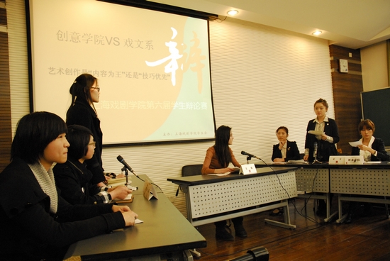 在3月24日下午,第三第四场的辩论赛在华山路校区成功举行。下午三点,在红楼209,戏文系与创意学院的PK大赛拉开了帷幕。本场的主席特邀了10表演的新生,新疆同学迪丽热巴前来助阵,为辩论赛增添了不少人气。这次的辩题为《艺术创作是以内容为王还是技巧优先》创意学院引用了大量论据,甚至是宣传海报来使自己的论点充分有利。而戏文系的同学也不甘示弱,一来一回,应接不暇。最后,在四分的微小差距中,创意学院成功进入了复赛。在场的选手表示辩论赛可以使自己拓宽眼界,促进不同系院的交流,十分有益。来自09媒体创意的李肃同学获得本场最佳辩手。宣传部的吕品老师就本场选手的表现作了生动点评,也指出了同学们发挥时的不足和改进之处,为以后的比赛作了更好的提点。