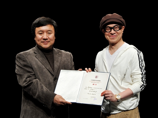 3月25日下午,我校在端均剧场授予詹瑞文先生客座教授称号。院长韩生为詹瑞文颁发聘书,副院长宫宝荣为他佩戴了上戏校徽。人事处处处长张�,教务处处长厉震林,表演系教授谷亦安也出席了此次仪式。