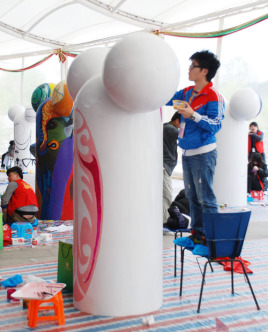 大赛分为两个阶段进行。首先是以投稿形式进行的初赛,经评委会挑选,有三十六件作品进入复赛。复赛类似于当场打擂,选手们齐聚上海市创意产业协会会员单位——东南东文化创意产业园,在统一规格的模板上通过彩绘的方式体现自己的设计作品。远远望去,选手们现场创作的一件件彩绘作品斑斓多姿、形态各异,煞是好看,犹如一道绚丽的风景线。