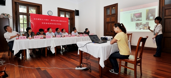 5月31日下午,我校党委在佛西楼老干部会议室举行创先争优创新项目评审会。党委书记楼巍主持评审会,副院长张伟令出席评审会。上海市教卫党委组织处、政策研究室等有关处室干部和光明日报、解放日报等媒体记者担纲评委。经过全校各支部的竞相申报,学生党总支、党委机关支部、离休支部、演艺中心支部、导演系支部、表演系支部等六个支部获得重点项目扶持奖,其余支部分别获得一般项目扶持奖和鼓励奖。