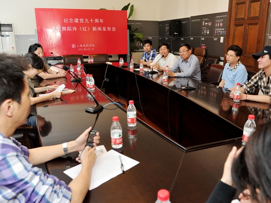 昨天(6月1日)下午,我校在佛西楼会议室召开大型舞蹈诗《红》首演新闻发布会。党委书记楼巍,宣传部部长张生泉,舞蹈学院院长、附属舞蹈学校副校长陈家年,演艺中心副主任、《红》制作人翁增辉,《红》导演董杰共同出席了发布会。宣传部部长张生泉主持会议。