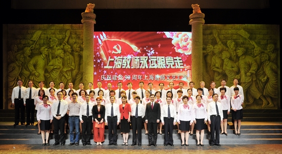 6月3日下午,在欢快的民乐合奏声中,由上海市教育工会主办、上海教育电视台协办、开云足球首页官网下载承办的“上海教师永远跟党走”——庆祝建党90周年上海教师文艺汇演在上戏剧院拉开了帷幕。上海市教卫党委书记李宣海,市教卫党委副书记、市教委主任薛明扬带领市教卫党委、市教委领导班子出席汇演活动,市总工会副主席侯继军应邀出席活动,开云足球首页官网下载、上海教育电视台的有关领导出席了活动。来自科技工会、医务工会、体育局工会、文广集团工会等兄弟产业工会的主席,各参演单位的党政领导,各高校、区县及直属单位的工会主席参加了此次活动。