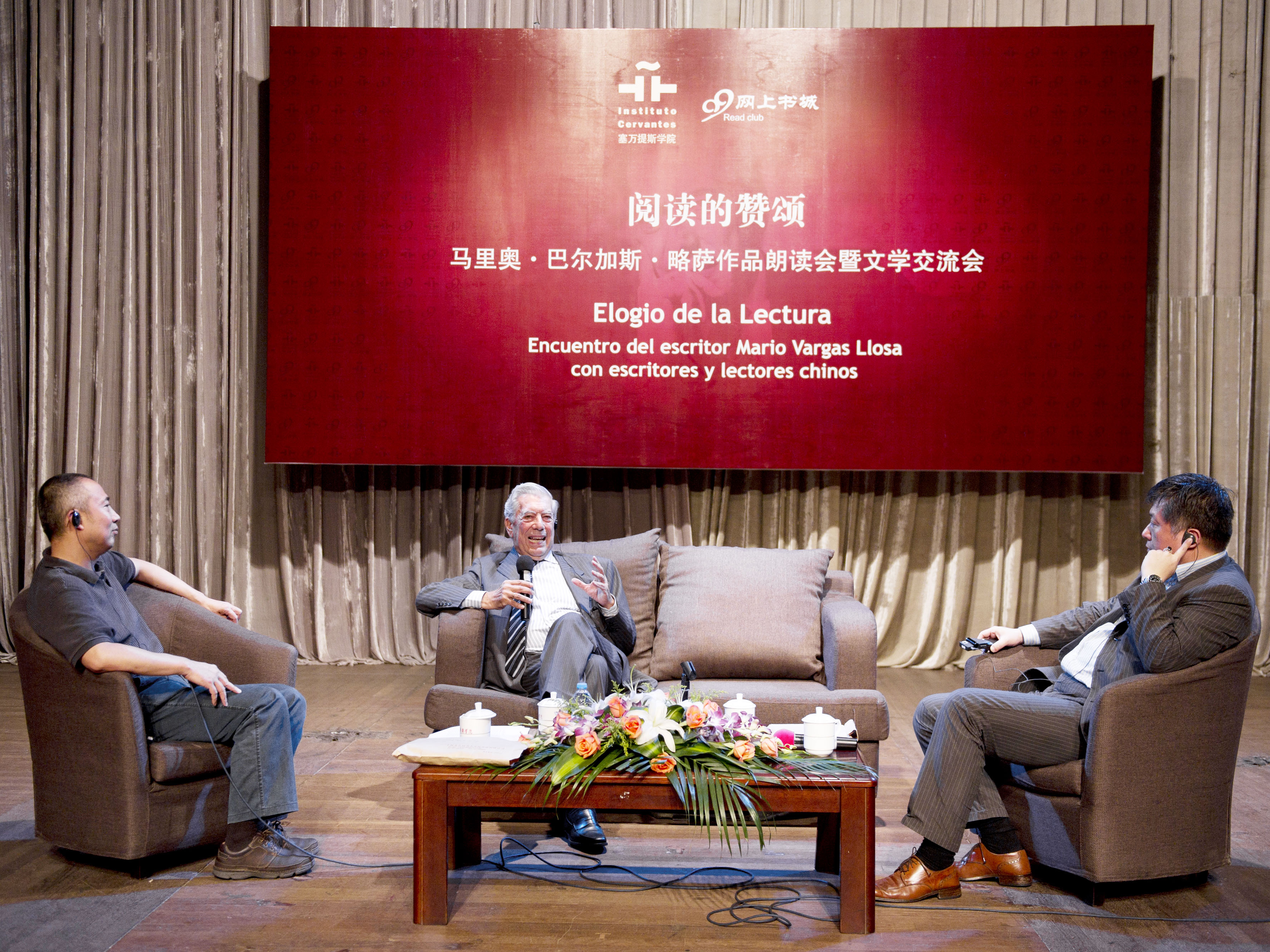 在作品朗读会暨文学交流会现场,150个座位坐无虚席,过道中站满了慕名而来的文学爱好者。我校教师王苏和李传缨朗读了略萨的作品《坏女孩的恶作剧》和《绿房子》中的节选段落,用生动的语言细致入微地刻画了小说描绘的场景,形象再现了略萨小说对人性、对民族的思索。略萨本人也朗读了其作品《酒吧长谈》中的片断,引起全场观众长达5分钟的热烈掌声。