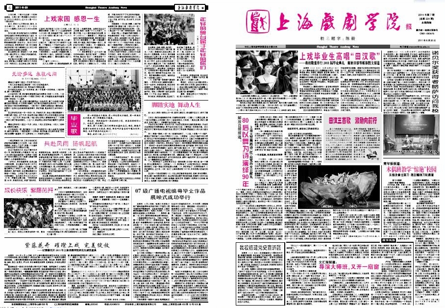 《开云足球首页官网下载报》2011年第7期(总第224期)已于2011年6月20日出版,本期共四版,第一、四版套红。重点内容有:《上戏毕业生高唱“田汉歌”——我校隆重举行2011届毕业典礼 解放日报等媒体图文报道》、《诺贝尔奖获得者略萨访问我校》、《我校组建党史宣讲团》等,敬请关注。也可点击下载观看。(图文、编辑/榕树)