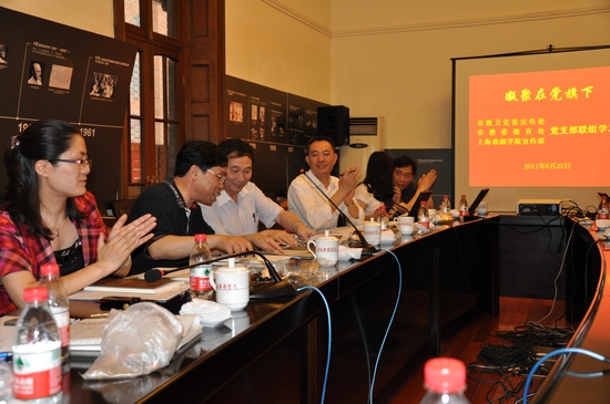 6月22日下午,我校宣传部与教卫党委宣传处、德育处在佛西楼会议室举行迎接七一的党组织联组学习活动。市教卫党委副书记高德毅出席学习会。市教卫党委宣传处长赵杨主持学习会。我校党委书记楼巍、副院长张伟令在学习会举行前亲切接待了教卫党委领导一行。我校宣传部长张生泉也出席了学习会。